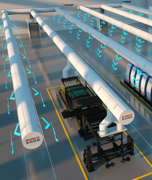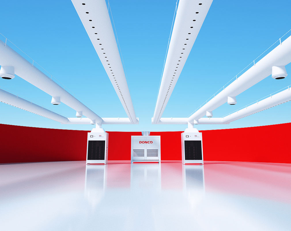 By integrating this self-generated low-temperature plasma, Donco AC system effectively decomposes organic waste gases, reduces dust, and disinfects the air, significantly improving indoor air quality. The process transforms harmful pollutants into safe, simple molecules, ensuring a cleaner, safer workspace.